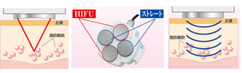 HIFUの技術は前立腺癌や結石治療にも用いられる日本の最先端技術。これにより頑固なセルライトの狙い撃ちが可能になりました。